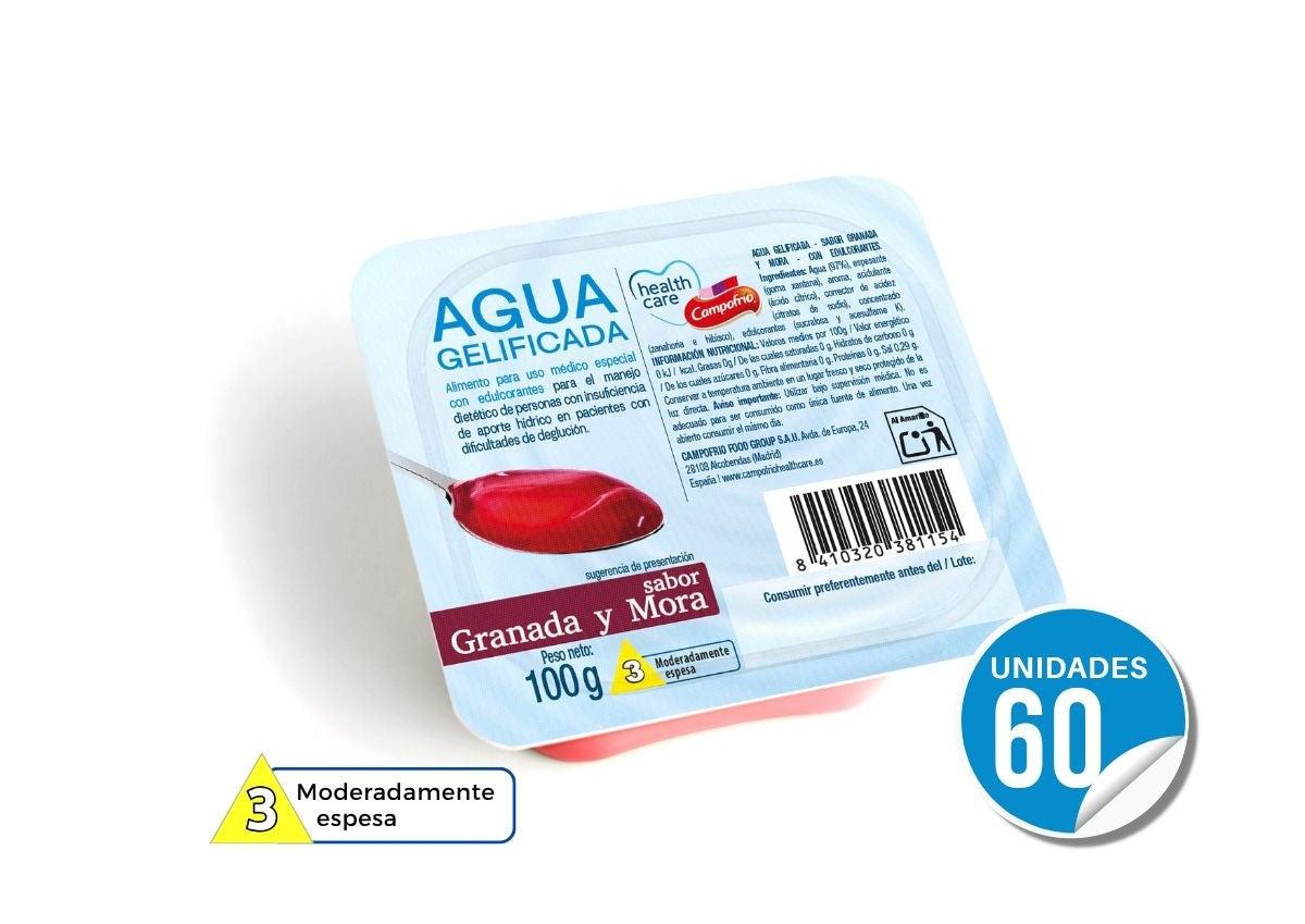 El agua gelificada es una bebida saborizada con textura de gel lista para su consumo. Es útil para hidratar cuando existe disfagia para líquidos, así como la administración de medicamentos en caso de dificultad para deglutir.